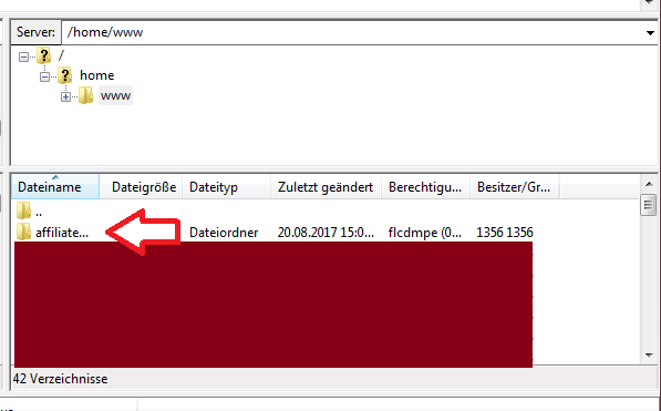 Nun werden rechts im Feld Deine Domains, welche Du bei deinem Webhoster gehostet hast, angezeigt. Sollte dies nicht der Fall sein, werden vermutlich erst andere Überordner angezeigt (meist www oder home genannt), in denen Du deine Domain(s) findest.